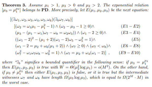 Let's decipher this. Since the expressions (E1-E10) are all prepositions that can be written as a polynomial equation, we can combine them as a one big integer coefficient multivariate polynomial $P$ with our "trick". Basically, if $\mu_1^{\mu_2} = \mu_3$, we can efficiently find our witness for $P$ that has subquadratic length. If $\mu_1^{\mu_2} \neq \mu_3$, either the witness for $P$ does not exist, or the witness has a large length, $\Omega(\mu_3 \log \mu_3)$ - which makes it impractical to use as a fake "proof" that $\mu_1^{\mu_2} = \mu_3$. We can also take care of edge cases like $\mu_1=0, 1$, $\mu_2 = 0, 1, 2$, $\mu_3=0$ easily with our "trick" as well. This shows that we can completely prove $a^b = c$ with DARK, zero-knowledge.