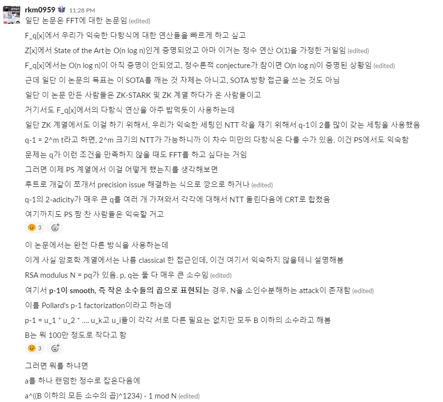 StarkWare 쪽 논문이라 일단 Cryptography. PS를 깊게 한 분들이라면 재밌게 읽을만 합니다.