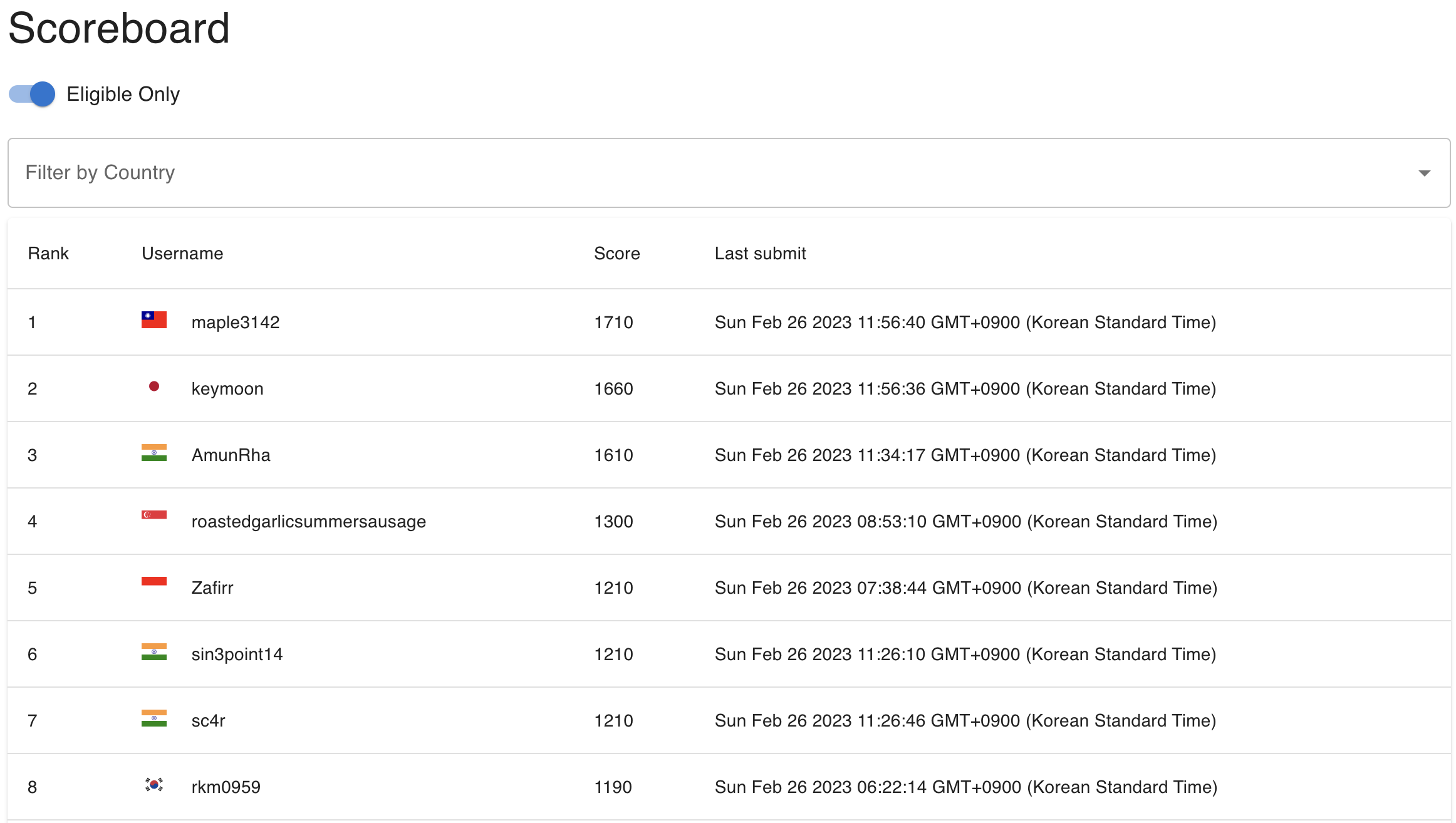 | CODEGATE 2023 Finals - The Leakers (1 solve) (1) | 2023.08.25 |